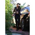 Kourtney Kardashian showed off her flat tummy in a crop top when she visited a friend in West Hollywood.