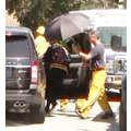 The momager managed to walk away from the scene.