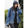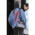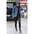 Kylie Jenner wore a denim Life of Pablo jacket when X17 photographers caught the starlet getting sushi on Friday.