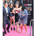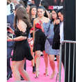 Mila Kunis looked pretty striking a pose on the pink carpet Tuesday at the Los Angeles premiere of her new film, Bad Moms.