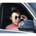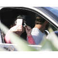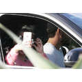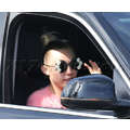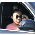 Miley Cyrus checks herself out as she takes selfies in the passenger seat of her car in Los Angeles.