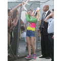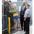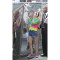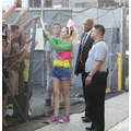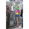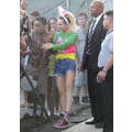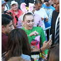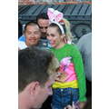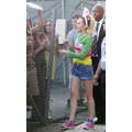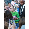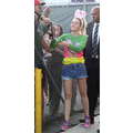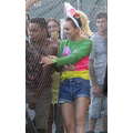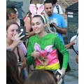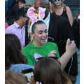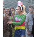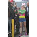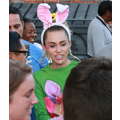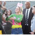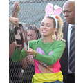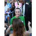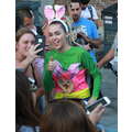 Miley Cyrus smiled when she signed autographs for fans on Wednesday.