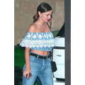 Miranda Kerr shows off her toned stomach when she dined at the SoHo in Malibu on Sunday.