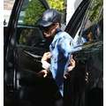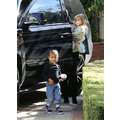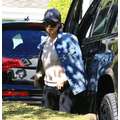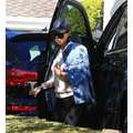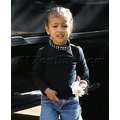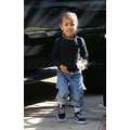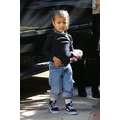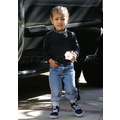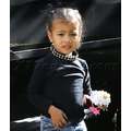 Little North West kills it in a jewel-necked top, cuffed jeans and high-top Vans for a kids' party in Beverly Hills, on Sunday.