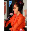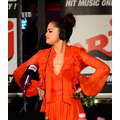 On Thursday, the sultry singer struck a pose wearing a Giambattista Valli gown and Francesco Russo shoes when she stopped at at l'arc Paris for the Cauet show on the French radio station, NRJ.