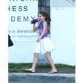 Suri Cruise looks like she doesn’t have a care in the world as she leaves her gymnastics class with her maternal grandmother on Thursday.