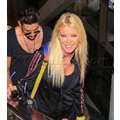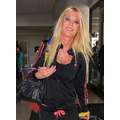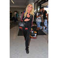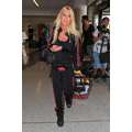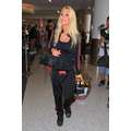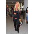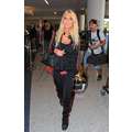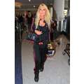 Wearing a lot of makeup, Tara Reid heads to NYC in a black Adidas track suit on Friday.