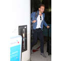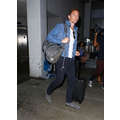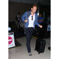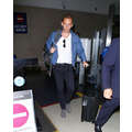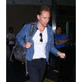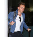 Landing in Los Angeles on Tuesday night, Tom Hiddleston flies solo and takes a break from his whirlwind romance with Taylor Swift.