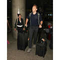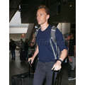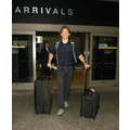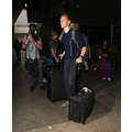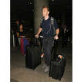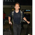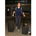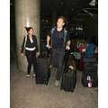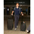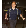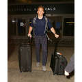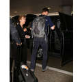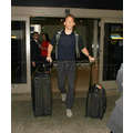 The actor arrives in LA while girlfriend Taylor Swift spends time in NYC.