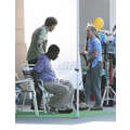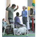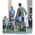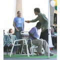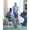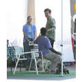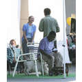 Tracy Morgan and Amanda Seyfried pet a pig and dachsund while taking a break on the set of The Clapper on Wednesday.