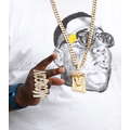 The comedian is dripping in gold jewelry.