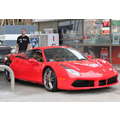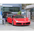 Tyga stops for gas after he gives Kylie Jenner a Maybach for her 19th birthday.