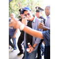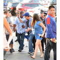 Charlie Sheen fist-bumps fans at the Dodgers - Cubs game in LA.