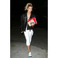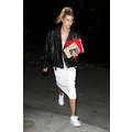 Hailey Baldwin looks like Sandy in Grease at Hillsong church Wednesday night.
