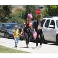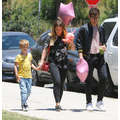Hilary Duff shows off her growing baby bump at a party, escorted by baby daddy Matthew Koma and her son Luca.