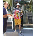 Justin Bieber hides under his Drew House tie-dye hoodie, as usual.