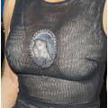 Kim Kardashian wears an image of the Virgin Mary on her chest the same day she releases a Kimoji of herself as the Virgin.