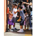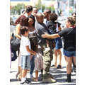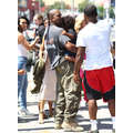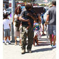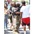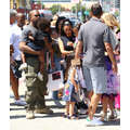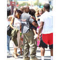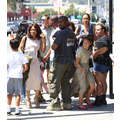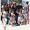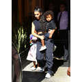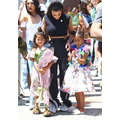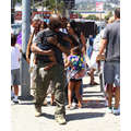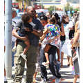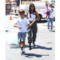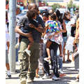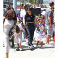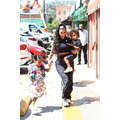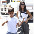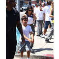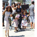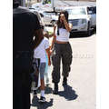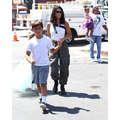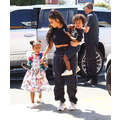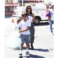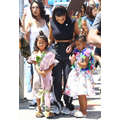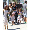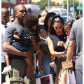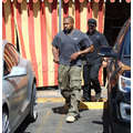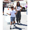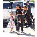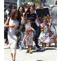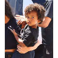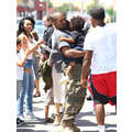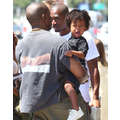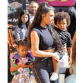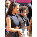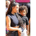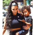 Kim and Kanye bring along son Saint to daughter North's fashion camp runway show.