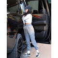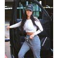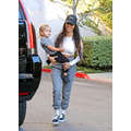 Kourtney Kardashian shows off her killer abs in a crop top and sweats.