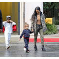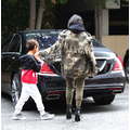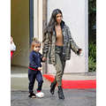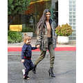 The streets of Calabasas are tough! Kourtney prepared for battle in her camouflage Yeezy get-up to take Penelope and Mason to mommy-and-me class.