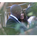 Kim Kardashian and Kanye West cuddle at a family member's wedding in Santa Barbara.