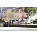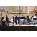 Kanye and Tyga hoof it out to Riverside to shoot a music video for