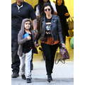 Kourtney Kardashian dresses like a rock star to take son Mason to music class.