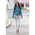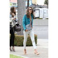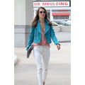 Alessandra Ambrosio wears skinny jeans and bright colors for a meeting in Santa Monica.
