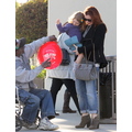 Alyson Hannigan carries daughter Satyana though Beverly Hills and stops to give money to the homless.