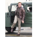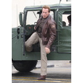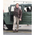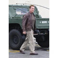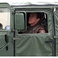 Arnold Schwarzenegger drives his bio-diesel Hummer in Santa Monica.