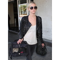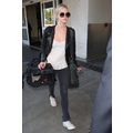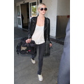 Ashlee Simpson was spotted retuning to Los Angeles in skinny jeans and a leather jacket, at LAX