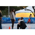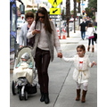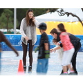 The model takes her brood on a fun winter activity.