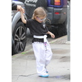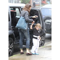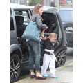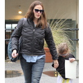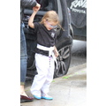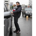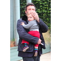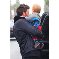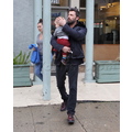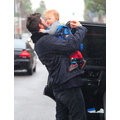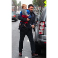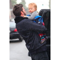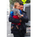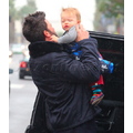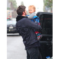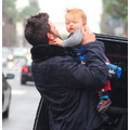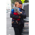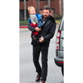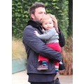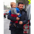 Ben Affleck in the rain with his 11 month old son Samuel.