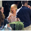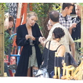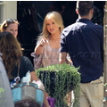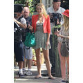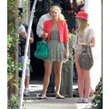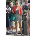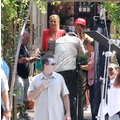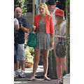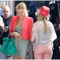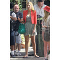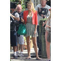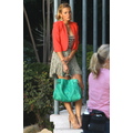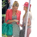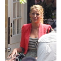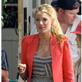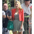 Blake Lively sports a bright red jacket as she films Gossip Girl in Beverly Hills.
