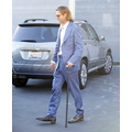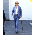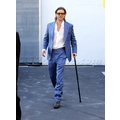 Brad Pitt was spotted leaving Smashbox Studios yesterday, and even though he's still hobbling around on his cane, he was in a great mood!