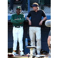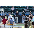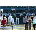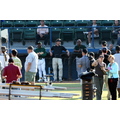 Brad Pitt was snapped on the set of Moneyball in LA.