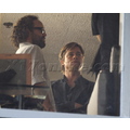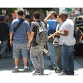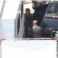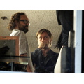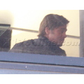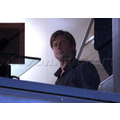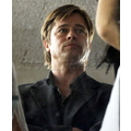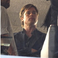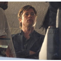 Brad Pitt films an office scene in a high-rise building in downtown Los Angeles.