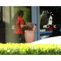 Britney Spears checks in to a hotel after evacuating her home due to threat of fire.