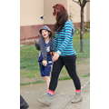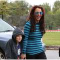 Amazing hair for Britney Spears who has a big laugh at mall after Jayden is playful with a photographer.