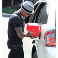 Aww, what a great guy! Benji Madden helped a stranded motorist fill up her tank yesterday on a busy street in Los Angeles.