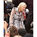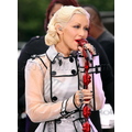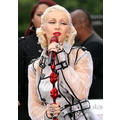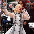 Christina Aguilera performed on the Early Show in NYC in a see through trench coat this morning.