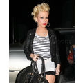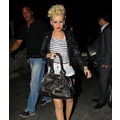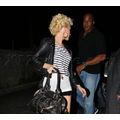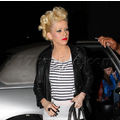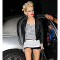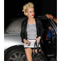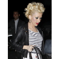 Christina Aguilera showed off her gams along with a full face of makeup and some serious hair in Hollywood last night.