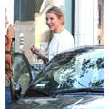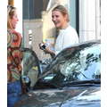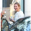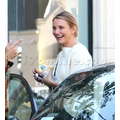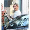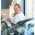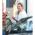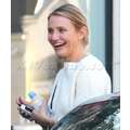 Cameron Diaz breaks her engagement news to a pal, laughing and showing off her new ring.