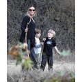 Charlie Sheen and ex-wife Denise Richards took a private plane out of Van Nuys on Saturday with their daughters while Brooke Mueller stayed behind in Los Angeles with their sons.