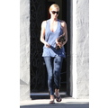 Charlize chose a dark graphite for an end-of-summer nail color.