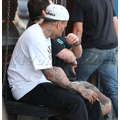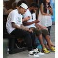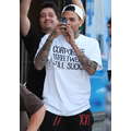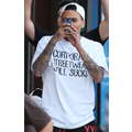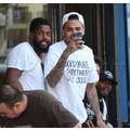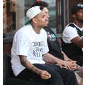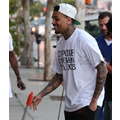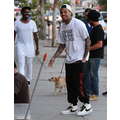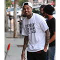 Chris Brown stopped by the Brooklyn Projects skate shop on Melrose on Tuesday, and the R&B singer was in a great mood.