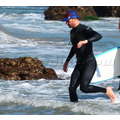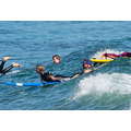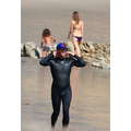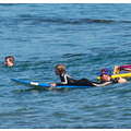 Chris Martin spends the day giving his son, Moses, surf lessons in Malibu on Sunday.
