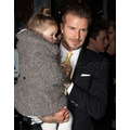 David Beckham carried daughter Harper after attending Victoria's fashion show in NYC on Sunday.