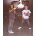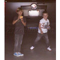 The Beckham boys were snapped horsing around after breakfast with their family on Friday.