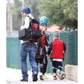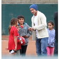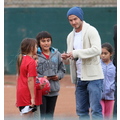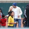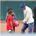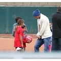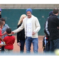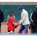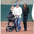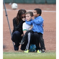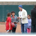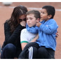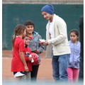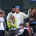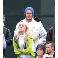 David and Victoria Beckham take baby Harper to help cheer on their boys during their soccer matches.